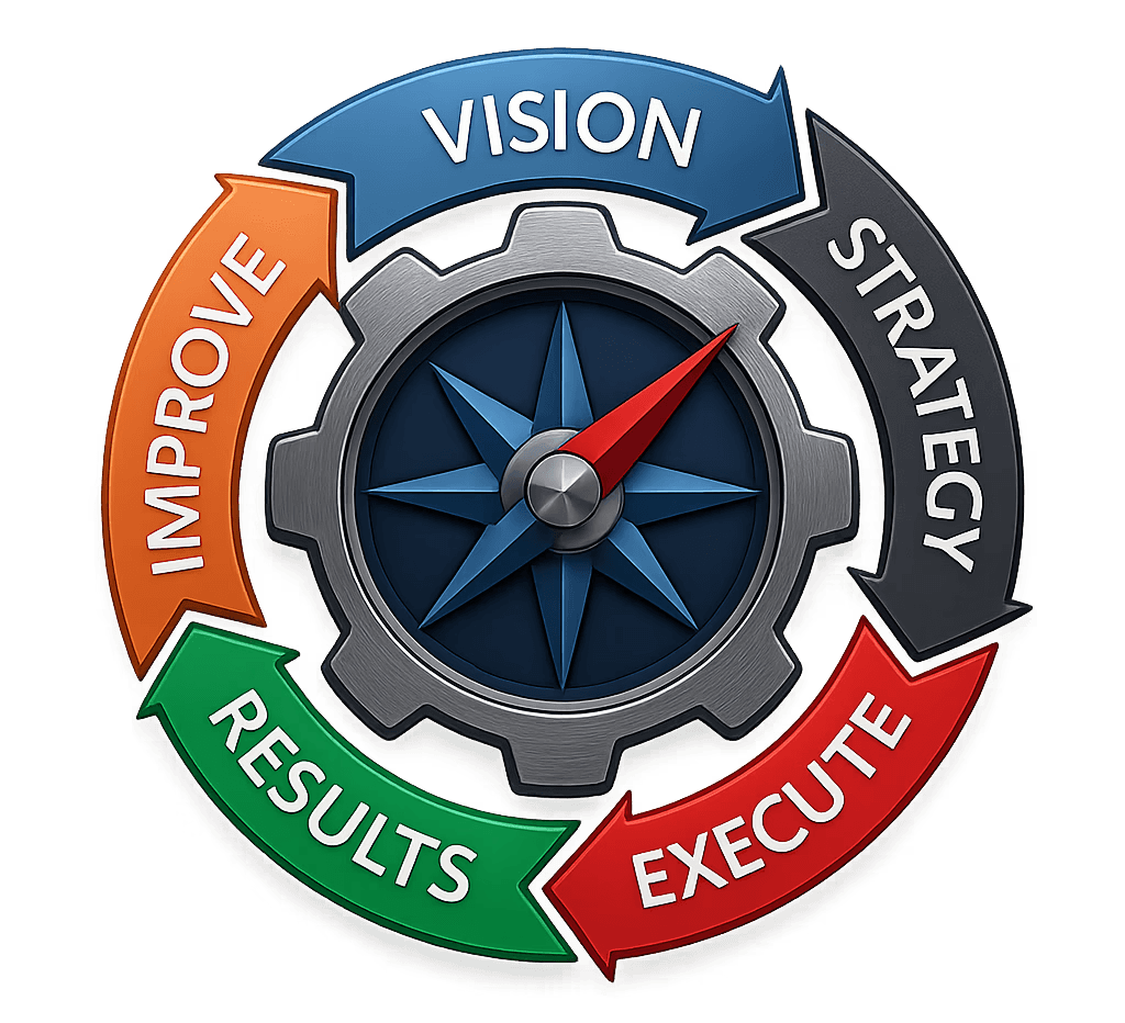 StrategyEngine™ is a guided, human-led process where you and your team build strategy together — making real decisions, aligning priorities, and committing to execution.